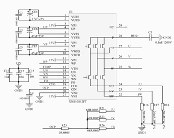 IGBT單管的裝配方式、絕緣要求處理、散熱方式等問(wèn)題為都比較難處理的,我們提供一種集成電源+功率模組的應用方案,體積小,功能齊全的應用方案。該方案集成IPM、整流橋、母線(xiàn)電壓采樣電路、相電壓采樣電路、電流采樣、預充電路、繼電器輸出、電源電路。