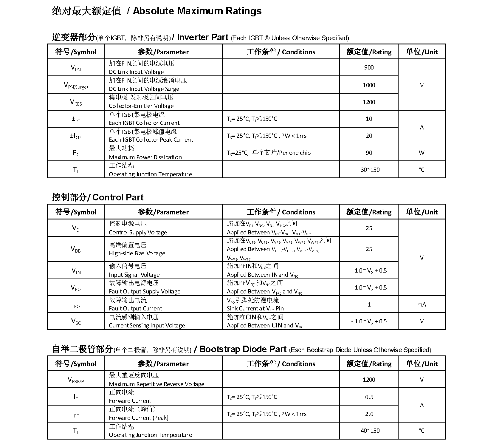 方案使用功率器件參數介紹